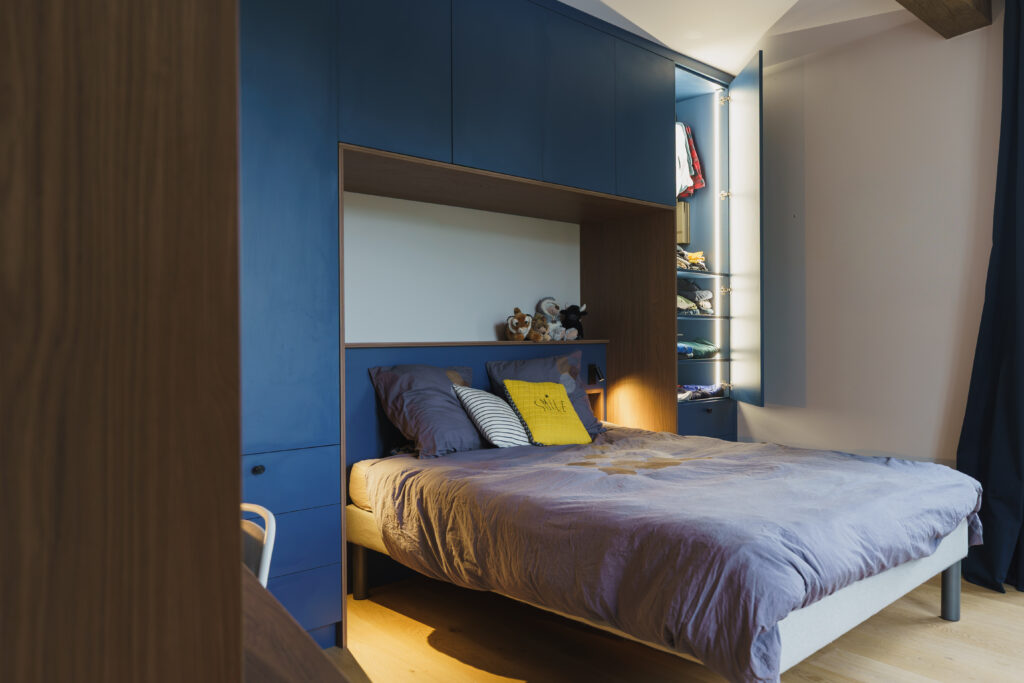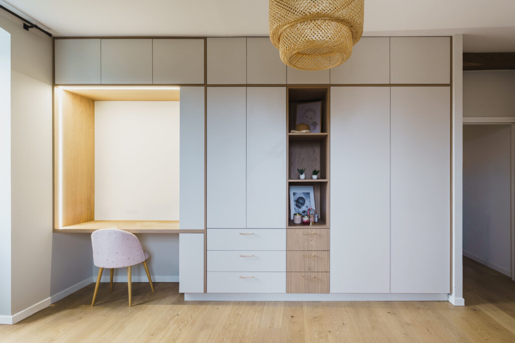 Création d’un dressing sur mesure pour une chambre pratique et moderne.