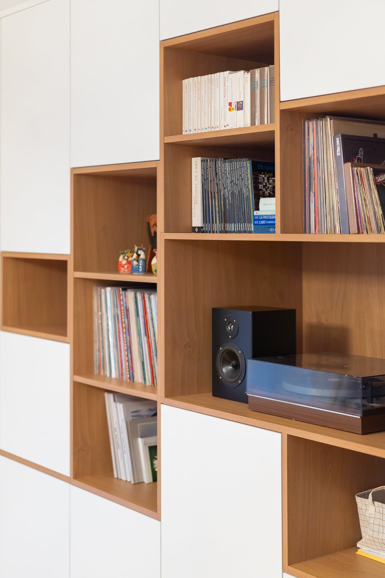 Nous avons imaginé et conçu un meuble sur-mesure avec :
