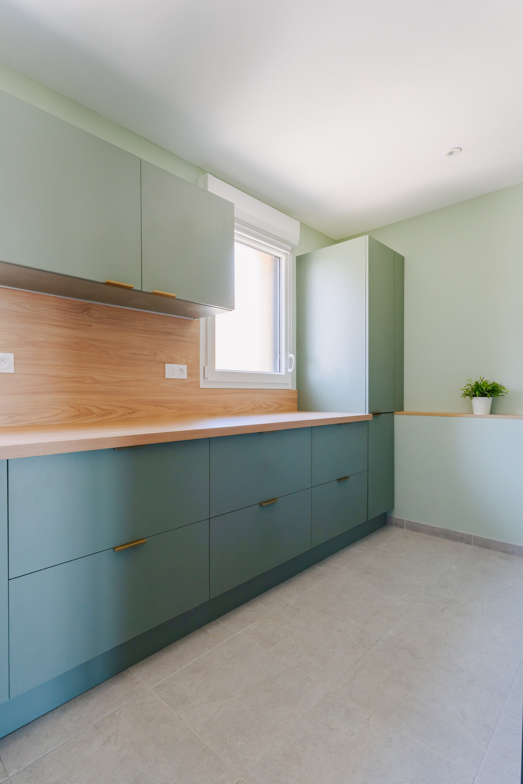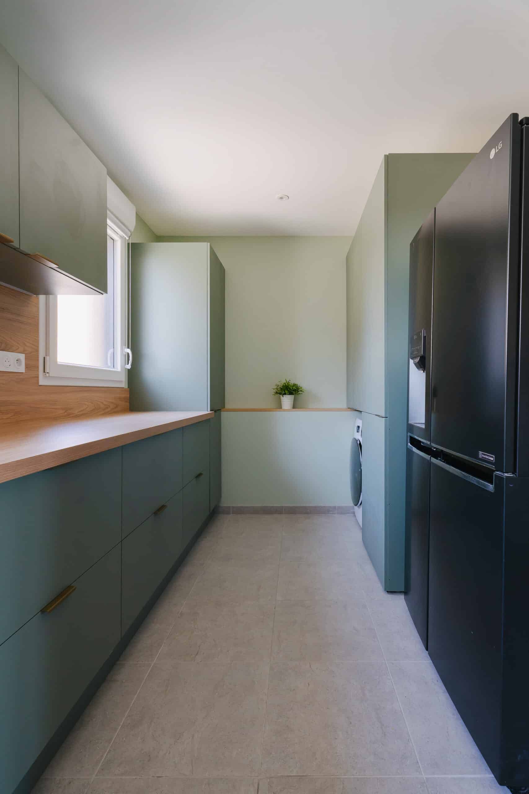- Intégrer la buanderie dans le linéaire de cuisine tout en conservant une lecture esthétique et cohérente.