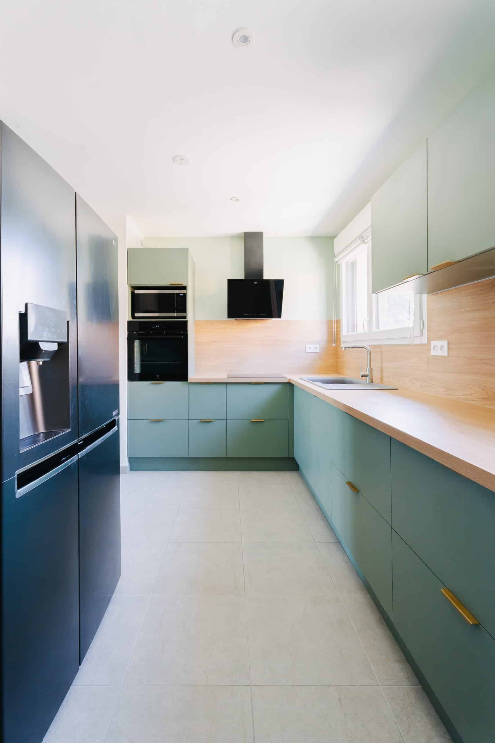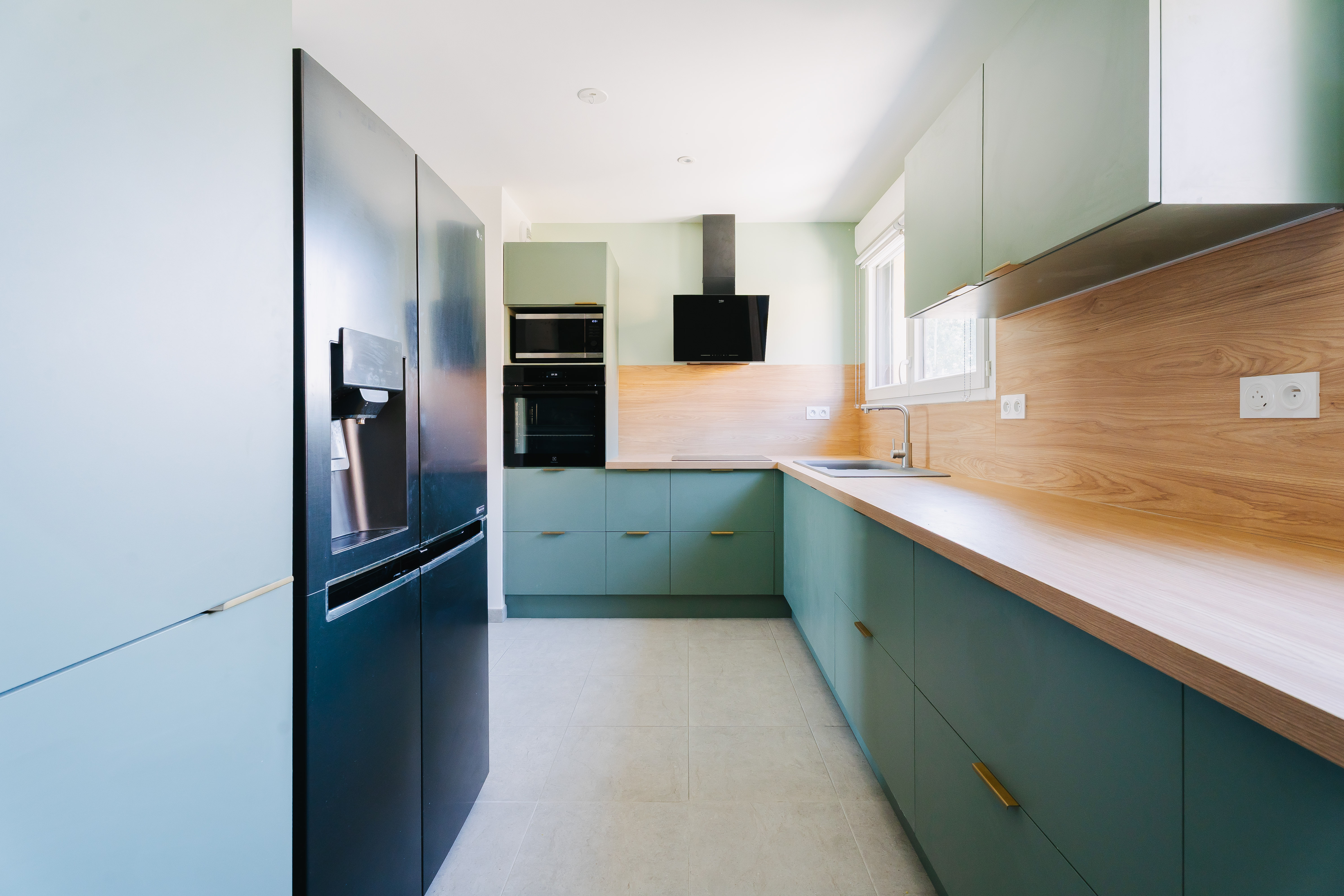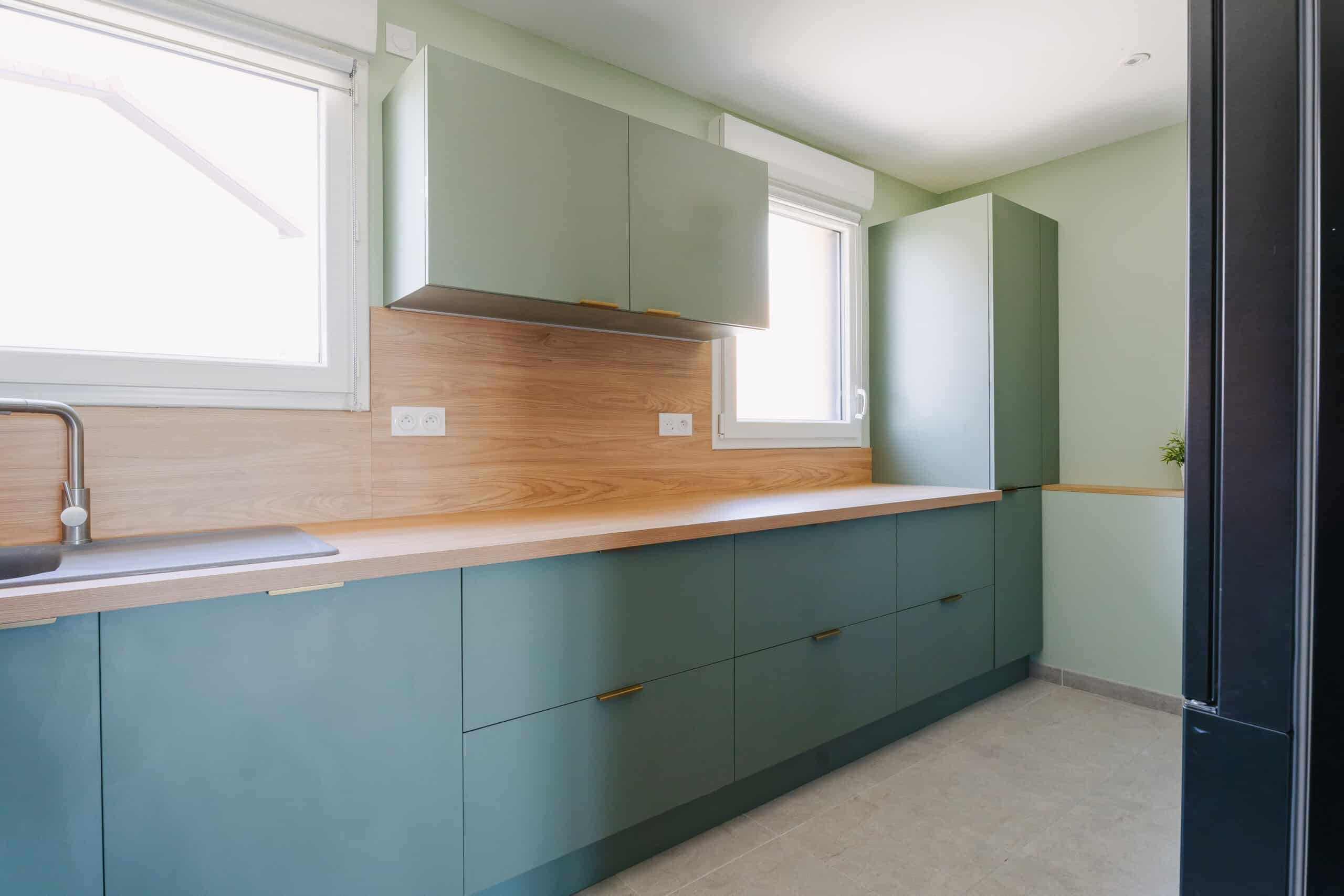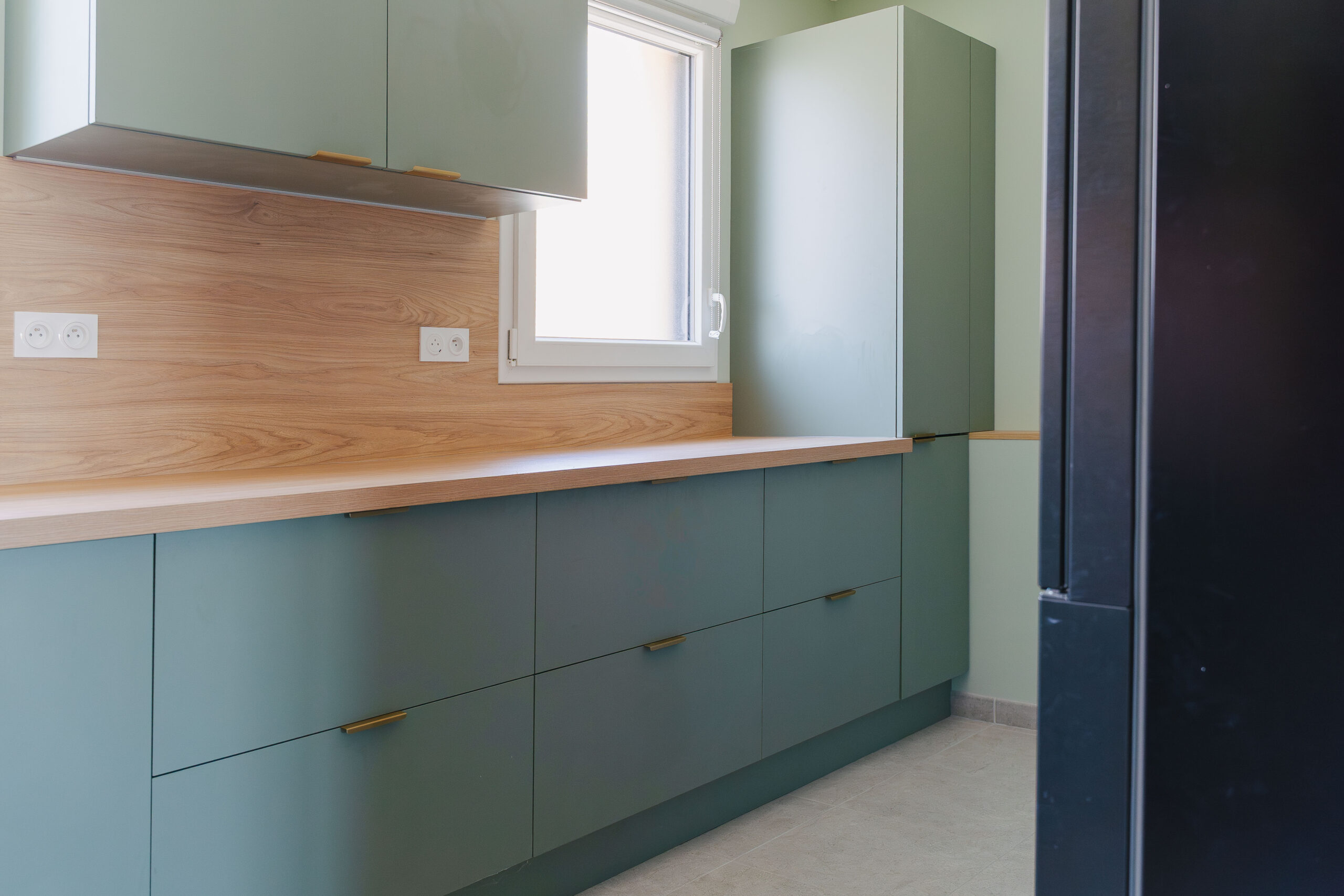 - Façades vertes : un vert profond qui apporte du caractère et dynamise la pièce.