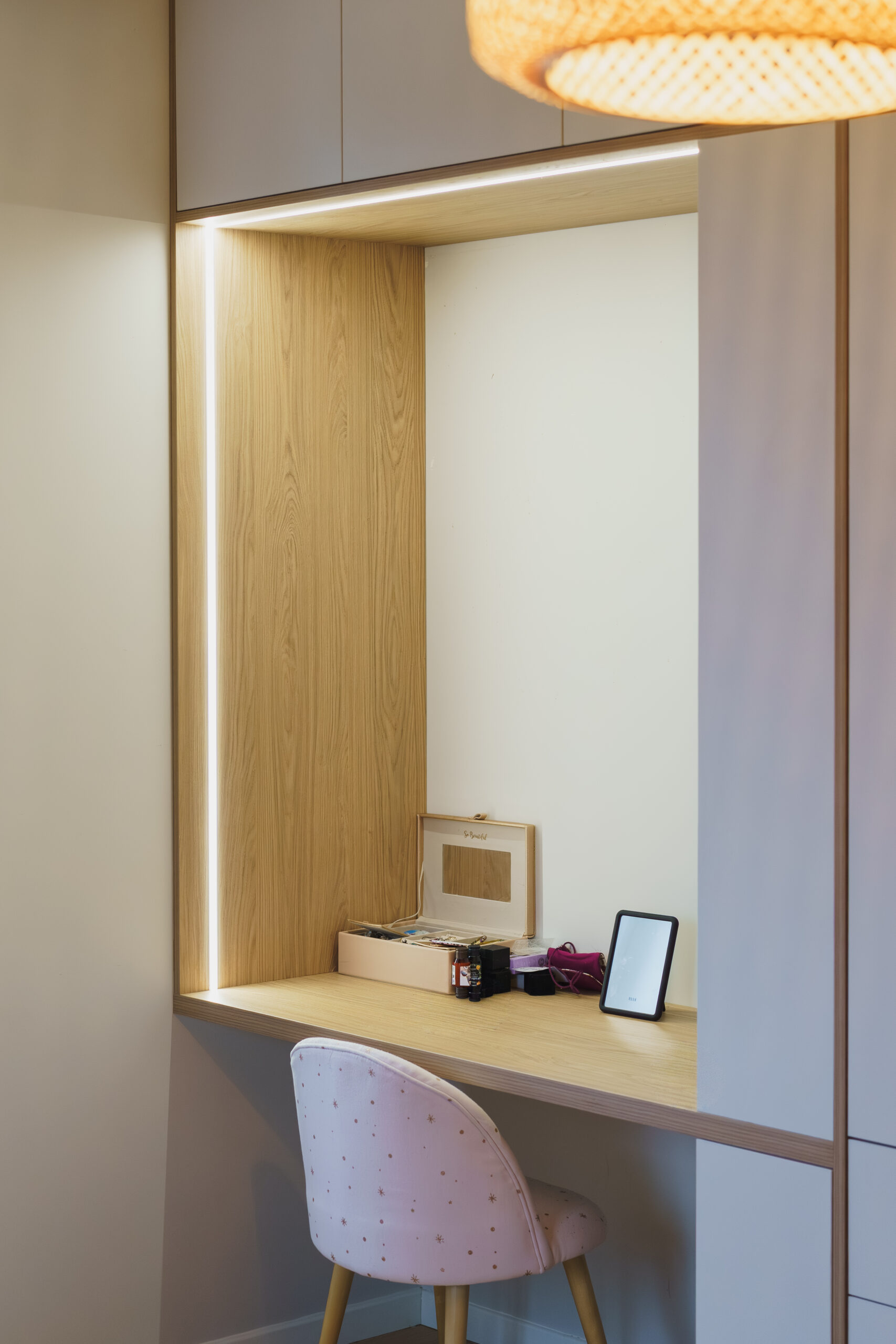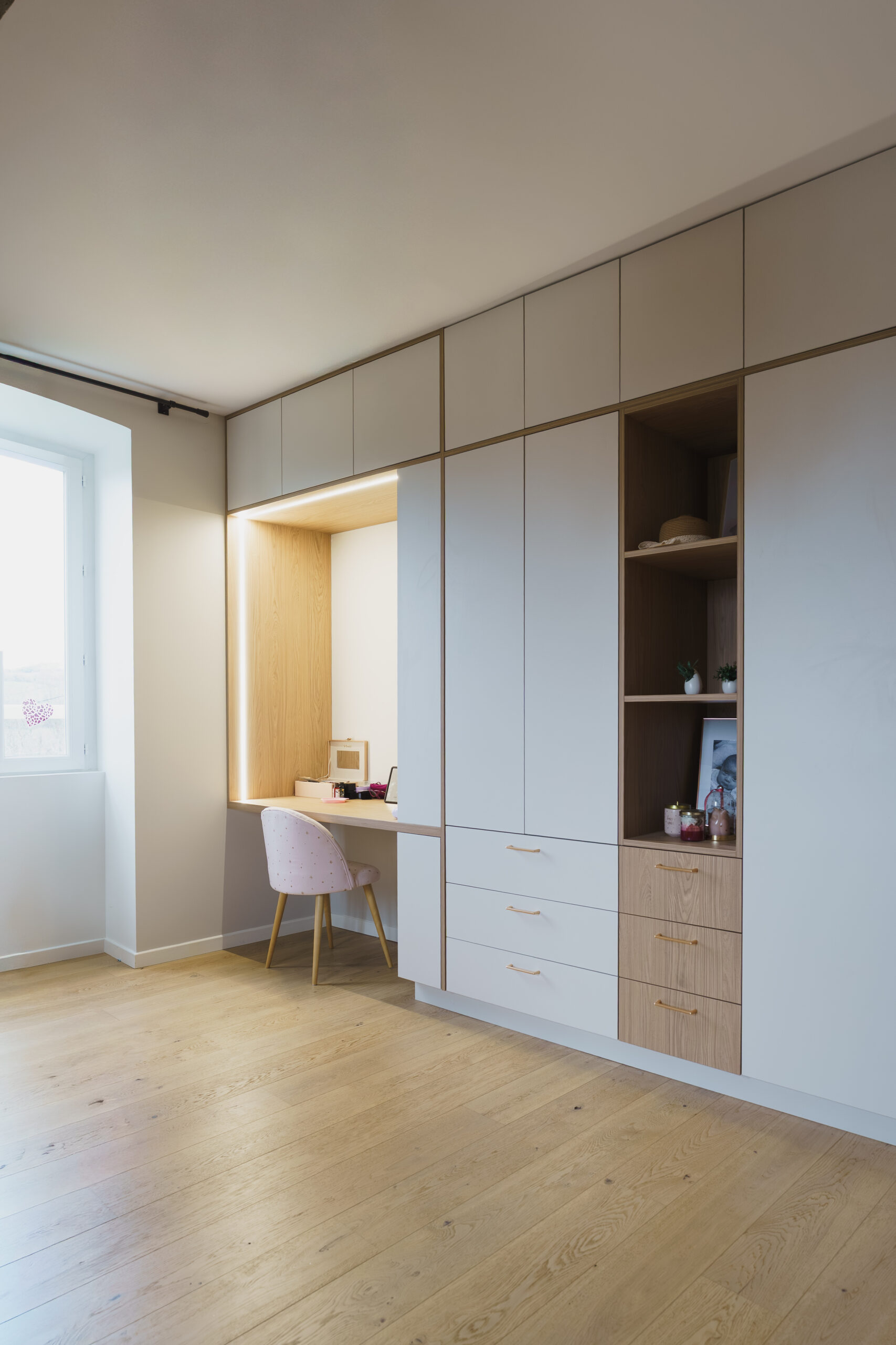 Fabrication d’un espace dressing avec une coiffeuse intégrée.