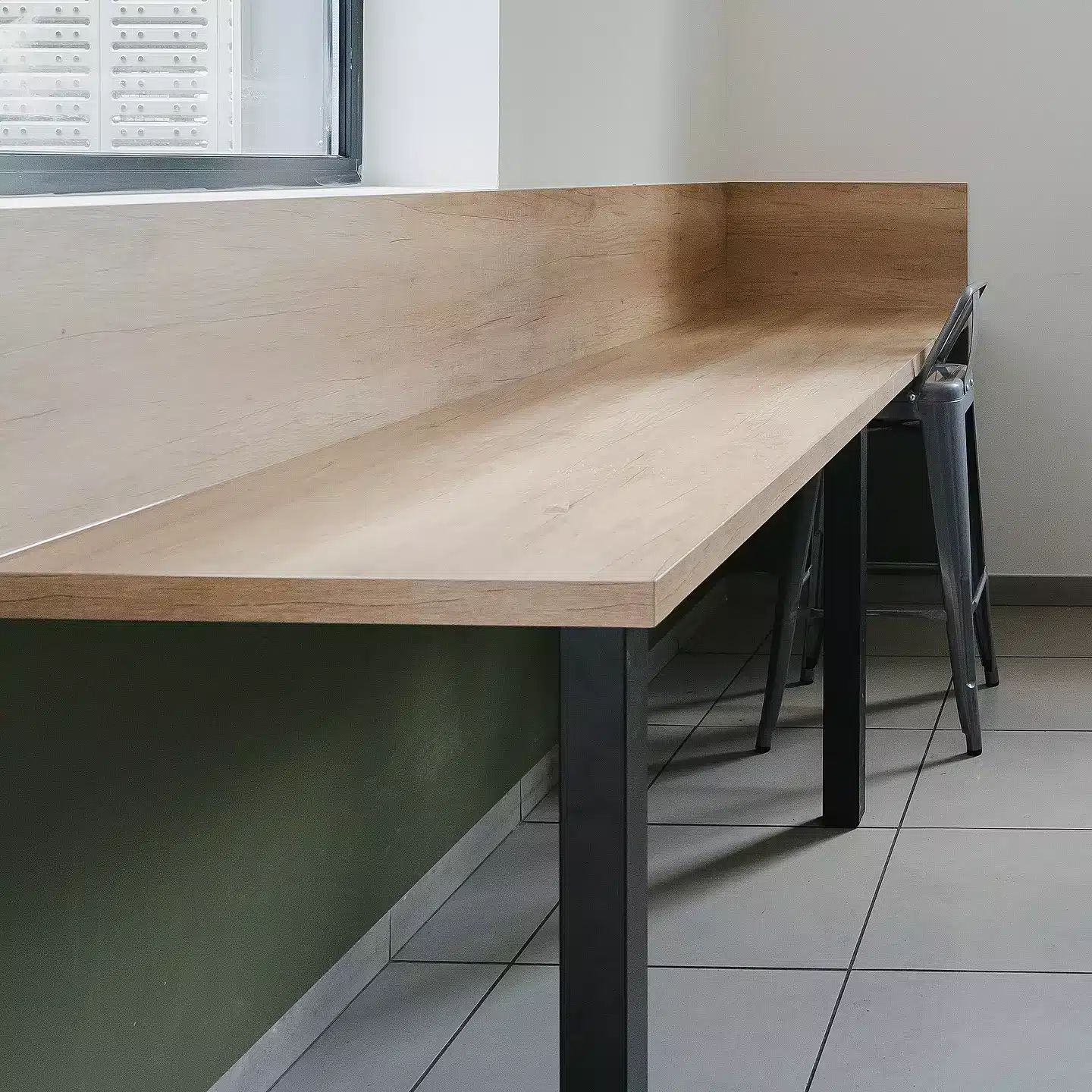 - Matériaux sélectionnés : le mélaminé et le stratifié ont été privilégiés pour leur robustesse et leur entretien facile.