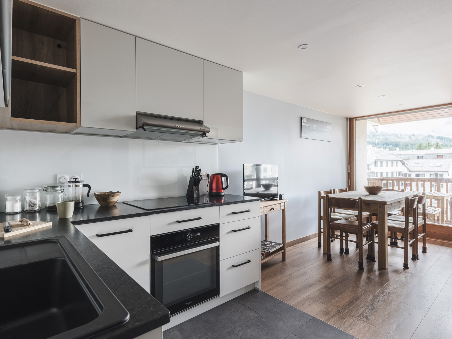 Au coeur de Chamonix, nos clients souhaitaient une cuisine ouverte, en accord avec l’ambiance simple et élégante du lieu. Conçue pour s’intégrer dans un petit espace, elle offre des rangements parfaitement optimisés.